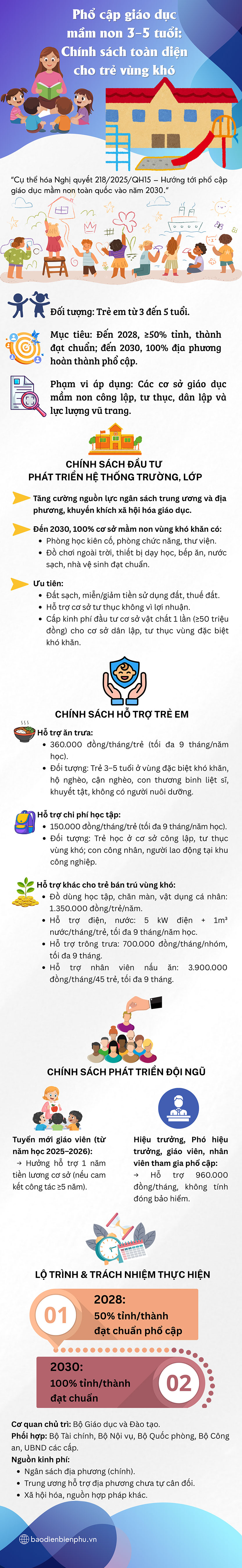 (Infographic) Phổ cập giáo dục mầm non 3 - 5 tuổi: Chính sách toàn diện cho trẻ vùng khó