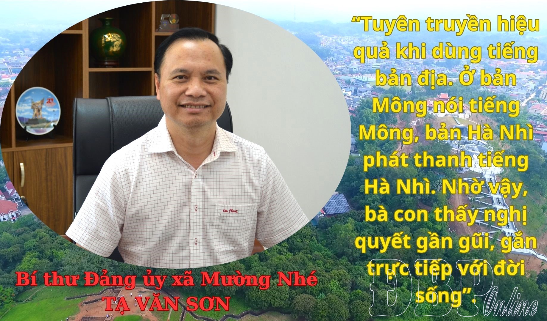 Ông Tạ Văn Sơn, Bí thư Đảng ủy xã Mường Nhé khẳng định: “Chúng tôi xác định tuyên truyền phải nói đúng tiếng của dân thì người dân mới nghe và làm theo. Ở bản người Mông thì phát bằng tiếng Mông, ở bản người Hà Nhì thì phát thanh bằng tiếng Hà Nhì. Nhờ vậy, đồng bào không còn cảm giác nghị quyết là chuyện xa vời, mà coi đó là việc gắn liền với lợi ích của chính gia đình mình”. Có thể thấy, từ sóng phát thanh của tỉnh đến loa truyền thanh ở thôn bản, tất cả đều hướng tới một mục tiêu chung biến nghị quyết của Đảng thành mệnh lệnh từ trái tim, thành hành động tự giác của mỗi người dân. Sự linh hoạt trong công tác dân vận bằng ngôn ngữ dân tộc đã góp phần làm nên thành công của các phong trào xây dựng nông thôn mới, bảo vệ biên giới và củng cố niềm tin của nhân dân với Đảng.
