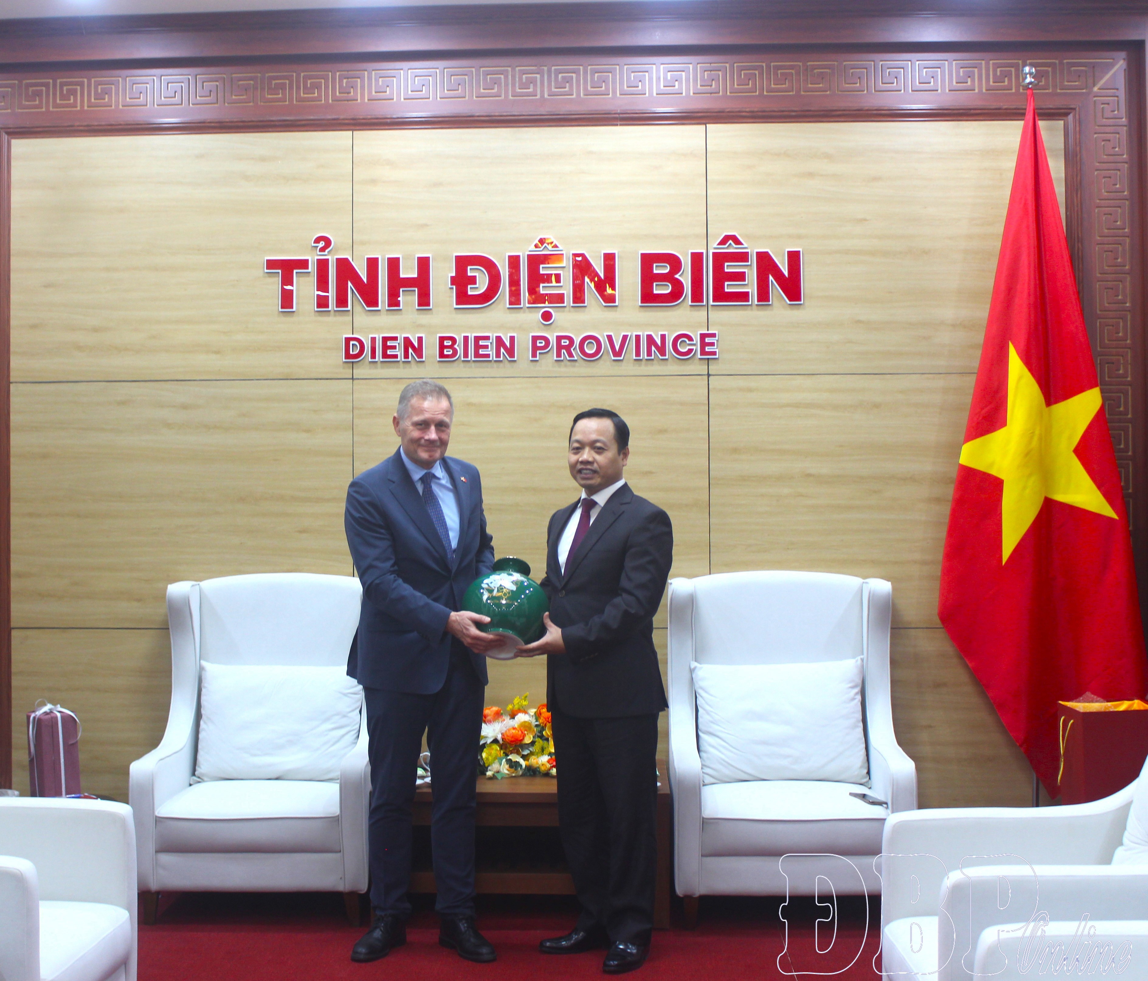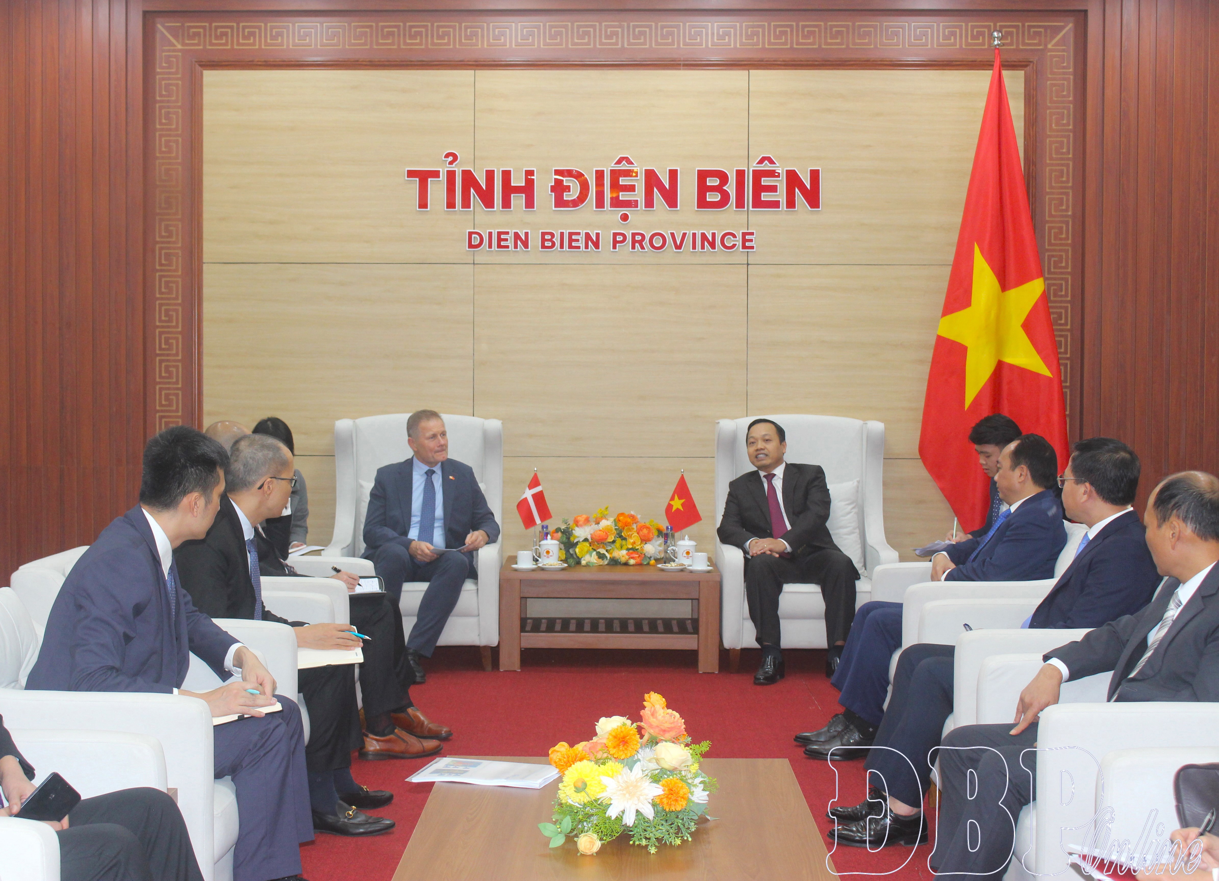 Tại buổi tiếp xã giao, Bí thư Tỉnh ủy cho biết tỉnh Điện Biên cam kết tạo điều kiện thuận lợi nhất cho các nhà đầu tư trong quá trình triển khai thực hiện các dự án trên địa bàn tỉnh. Đồng thời, mong muốn thời gian tới, ngài Đại sứ tiếp tục là cầu nối để tăng cường mối quan hệ hợp tác giữa hai quốc gia Việt Nam và Đan Mạch nói chung, giữa tỉnh Điện Biên với các doanh nghiệp Đan Mạch nói riêng.