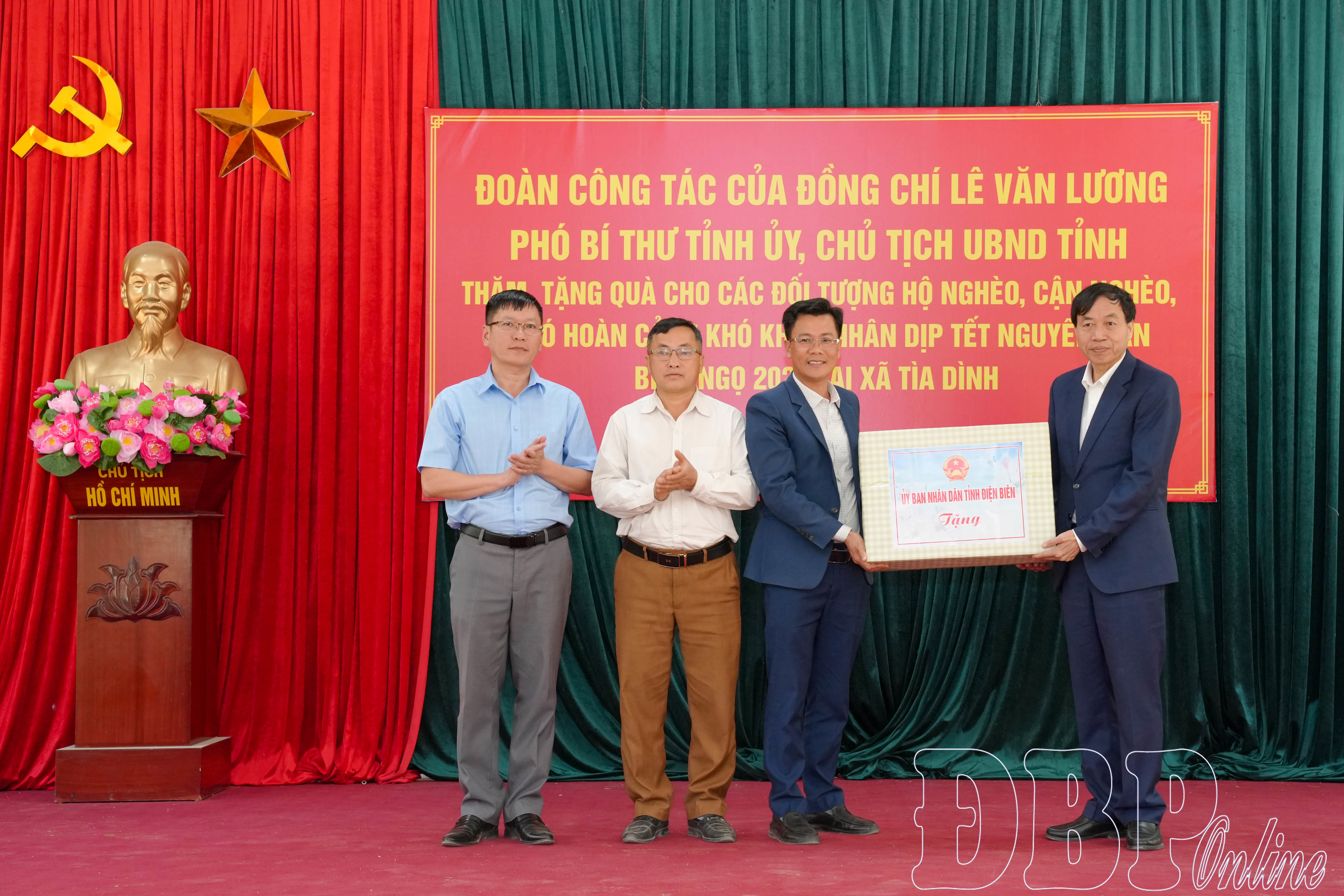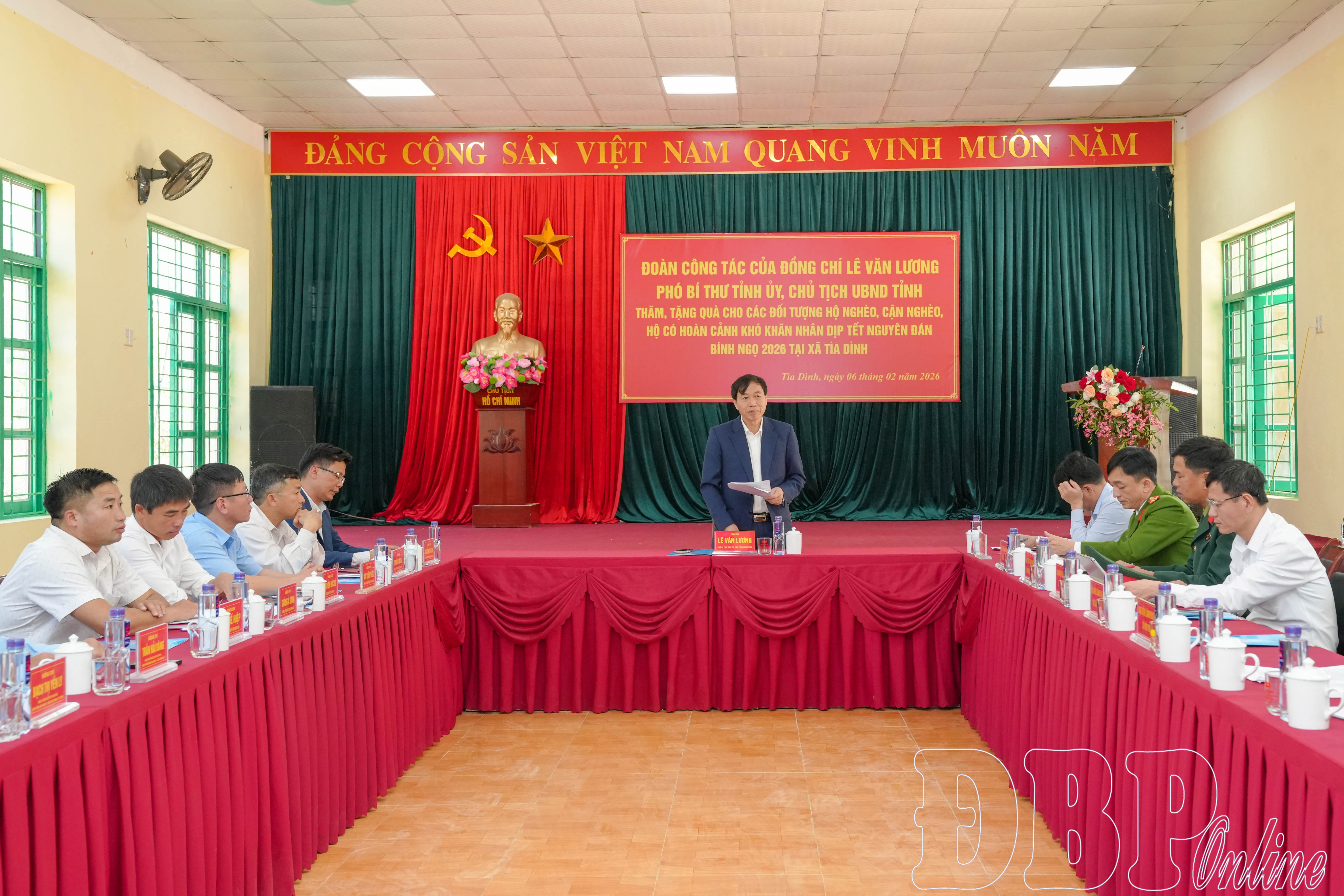 Nhân dịp Tết Nguyên đán Bính Ngọ 2026, chiều ngày 6/2, đoàn công tác của tỉnh do đồng chí Lê Văn Lương, Phó Bí thư Tỉnh ủy, Chủ tịch UBND tỉnh làm trưởng đoàn đã đến thăm, chúc tết Đảng bộ, chính quyền và tặng quà Tết cho các hộ nghèo, cận nghèo, hộ hoàn cảnh khó khăn tại xã Tìa Dình.
