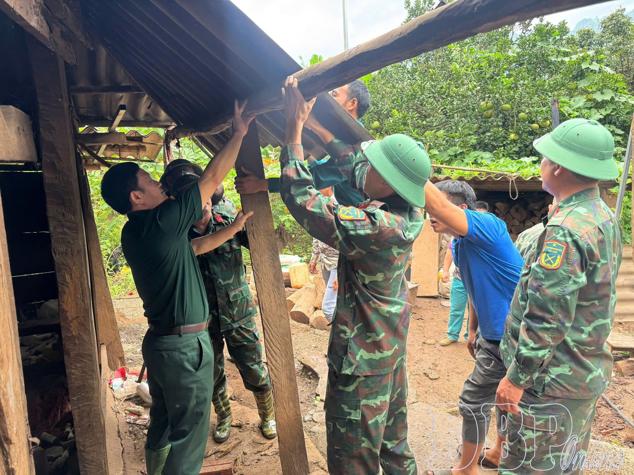 Ban Chỉ huy phòng thủ Khu vực 3 - Mường Ảng hỗ trợ nhân dân khắc phục thiệt hại mưa lũ.