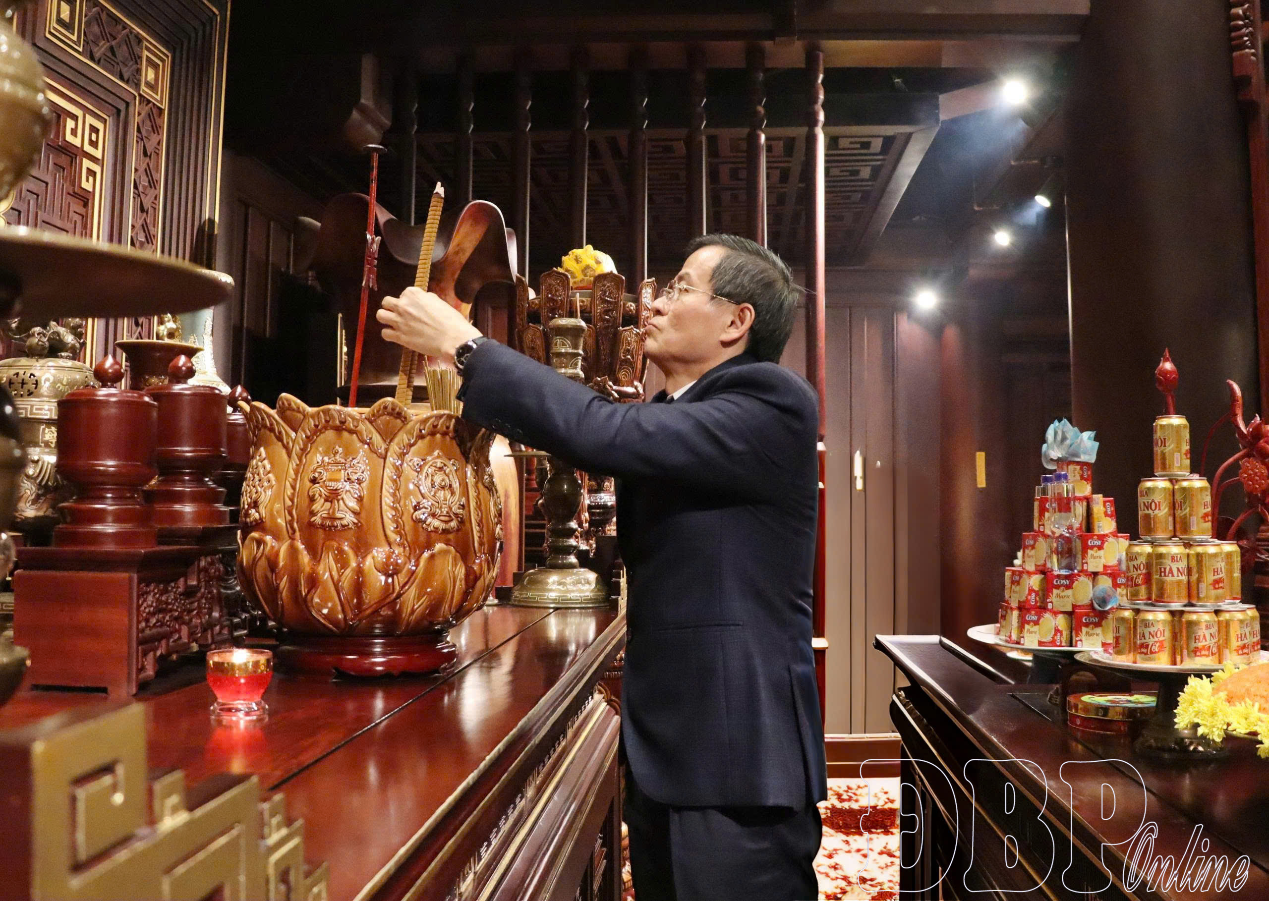 Đồng chí Đoàn Minh Huấn, Ủy viên Bộ Chính trị, Bí thư Đảng ủy, Giám đốc Học viện Chính trị quốc gia Hồ Chí Minh dâng hương các Anh hùng, liệt sĩ tại Đền thờ Liệt sĩ Chiến trường Điện Biên Phủ.