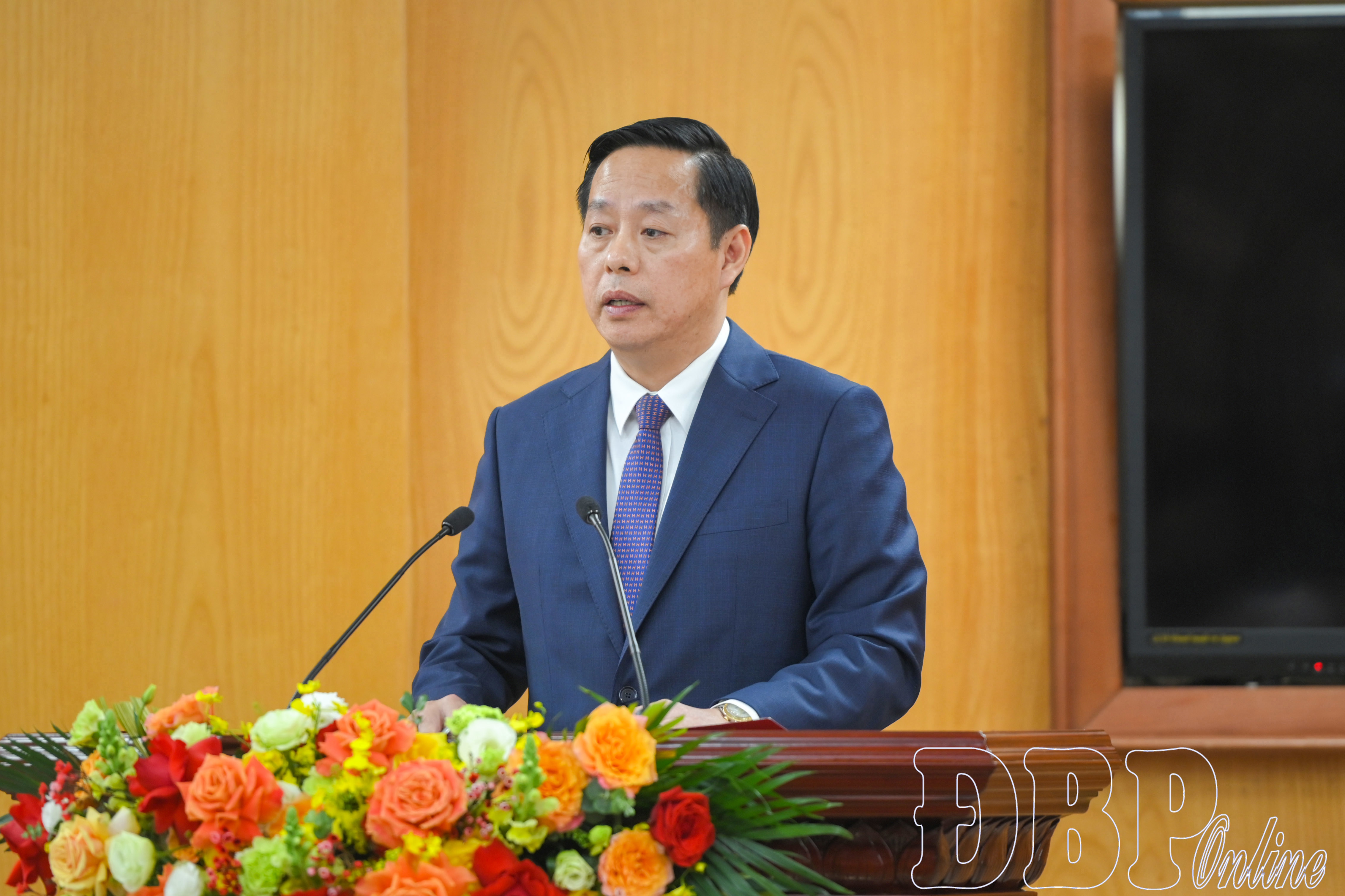 Phó Bí thư Tỉnh ủy Lai Châu Hà Quang Trung phát biểu nhận nhiệm vụ mới.
