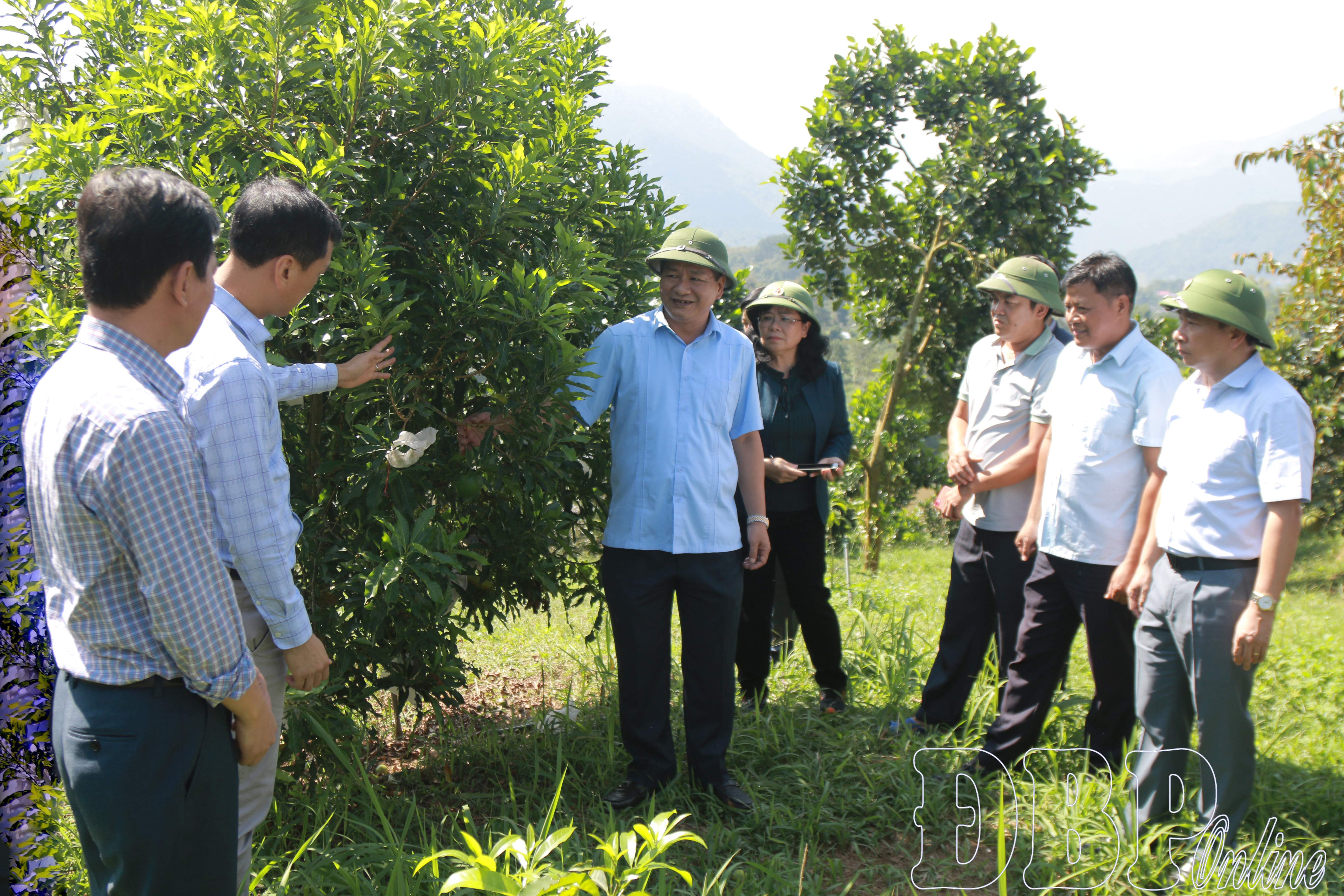 Chủ tịch UBND tỉnh Lê Thành Đô kiểm tra mô hình cây ăn quả tại xã Mường Ảng. Ảnh: Nguyễn Hoàn