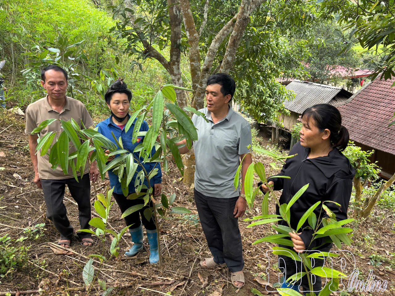 Người dân xã Mường Nhà trồng và chăm sóc cây quế.