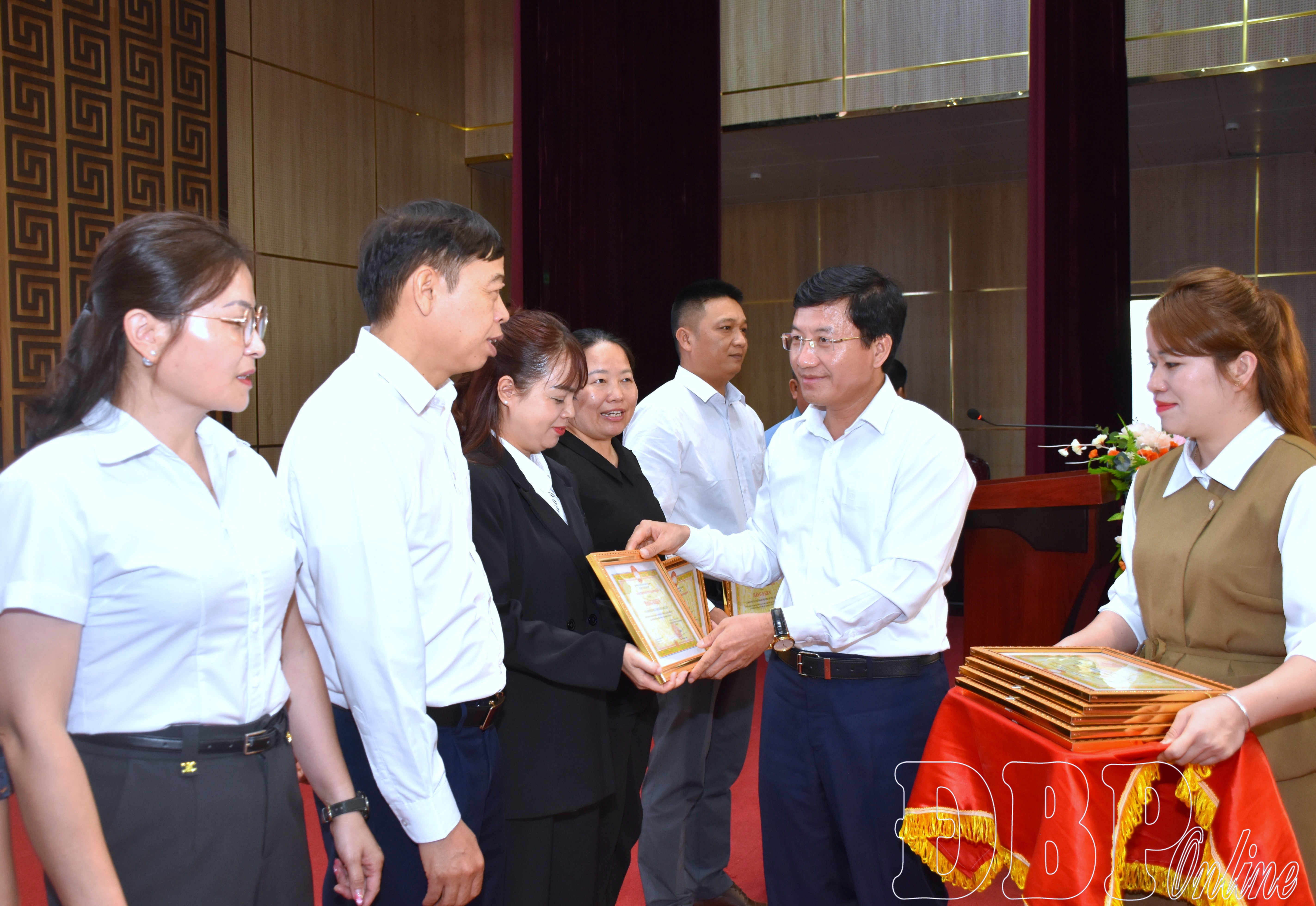 Phó Bí thư Tỉnh ủy Mùa A Vảng trao Bằng khen cho các tập thể có thành tích xuất sắc trong công tác bầu cử.