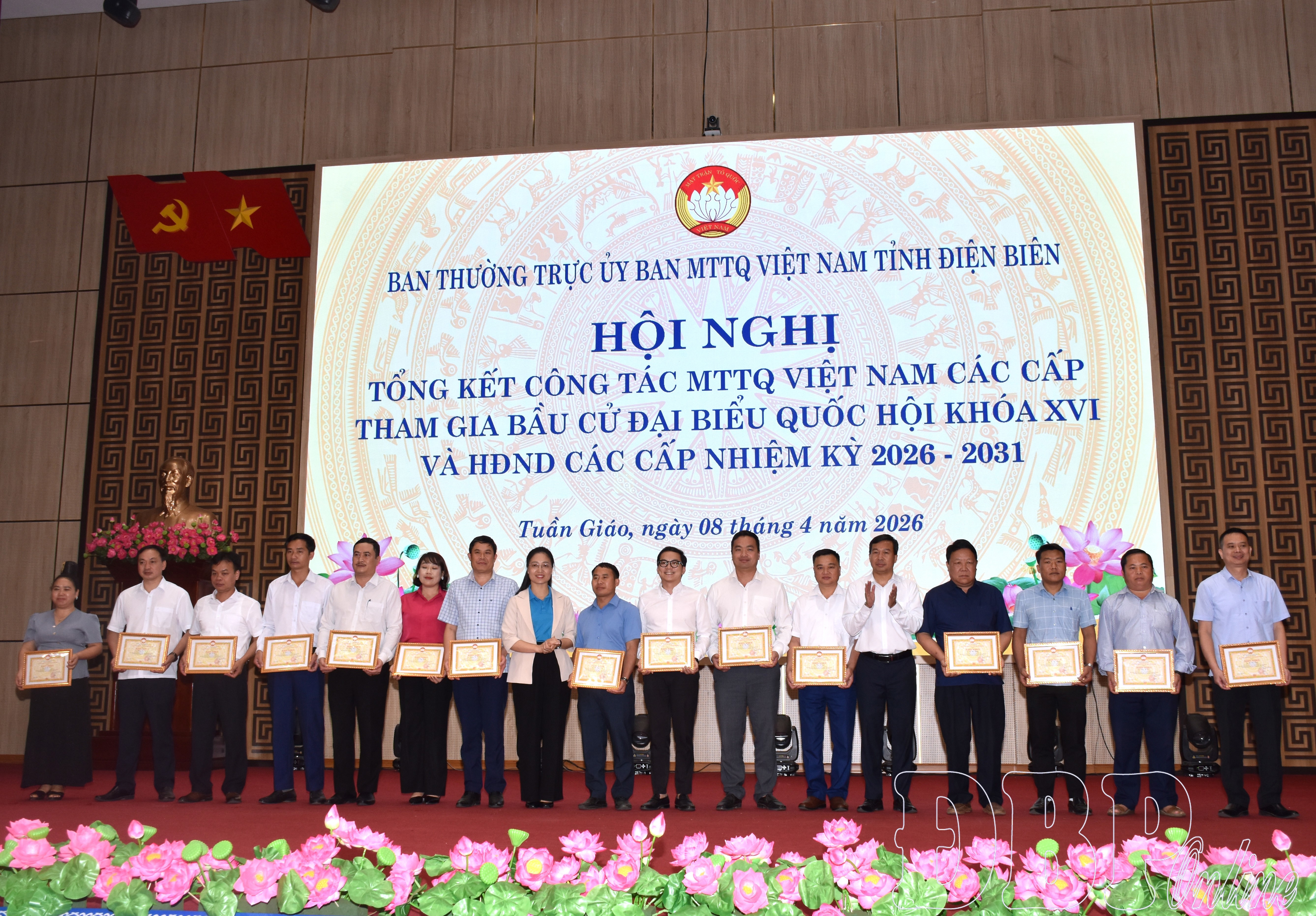 Nhân dịp này, Ban Thường trực Ủy ban MTTQ Việt Nam tỉnh tặng Bằng khen cho 18 tập thể, 21 cá nhân có thành tích xuất sắc trong công tác bầu cử đại biểu Quốc hội khóa XVI và đại biểu Hội đồng nhân dân các cấp nhiệm kỳ 2026 - 2031.