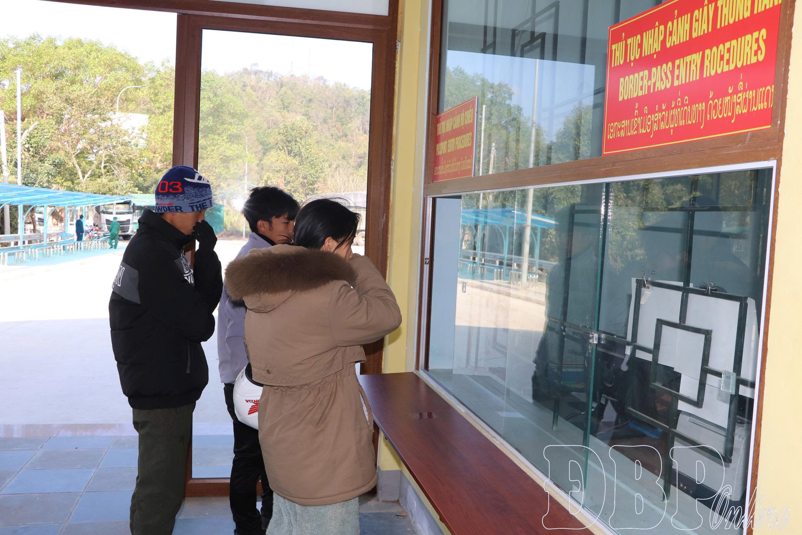 Người dân làm thủ tục xuất nhập cảnh tại Cửa khẩu quốc tế Tây Trang.