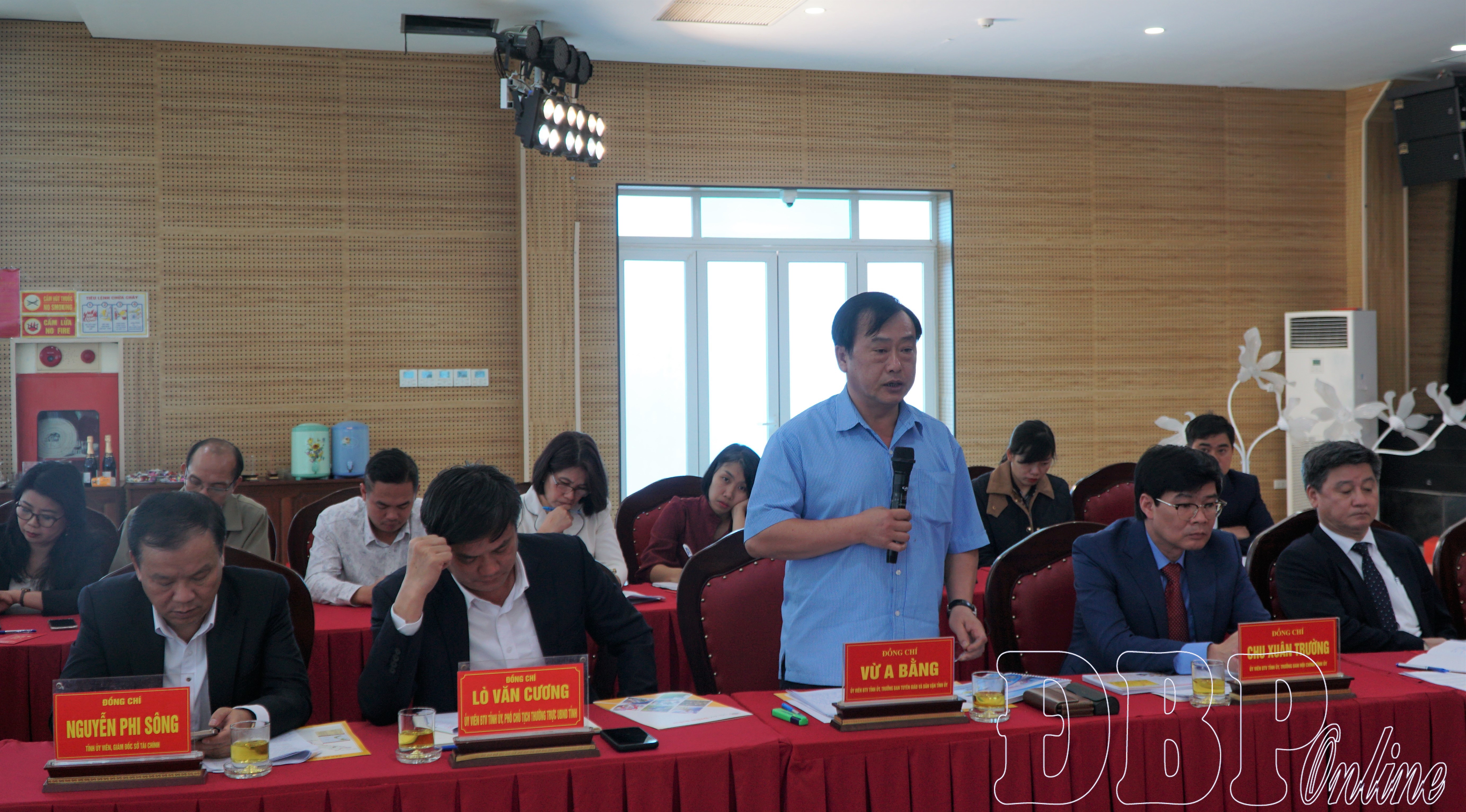 Đồng chí Vừ A Bằng, Ủy viên BTV, Trưởng ban Tuyên giáo và Dân vận Tỉnh ủy phát biểu tại buổi làm việc.