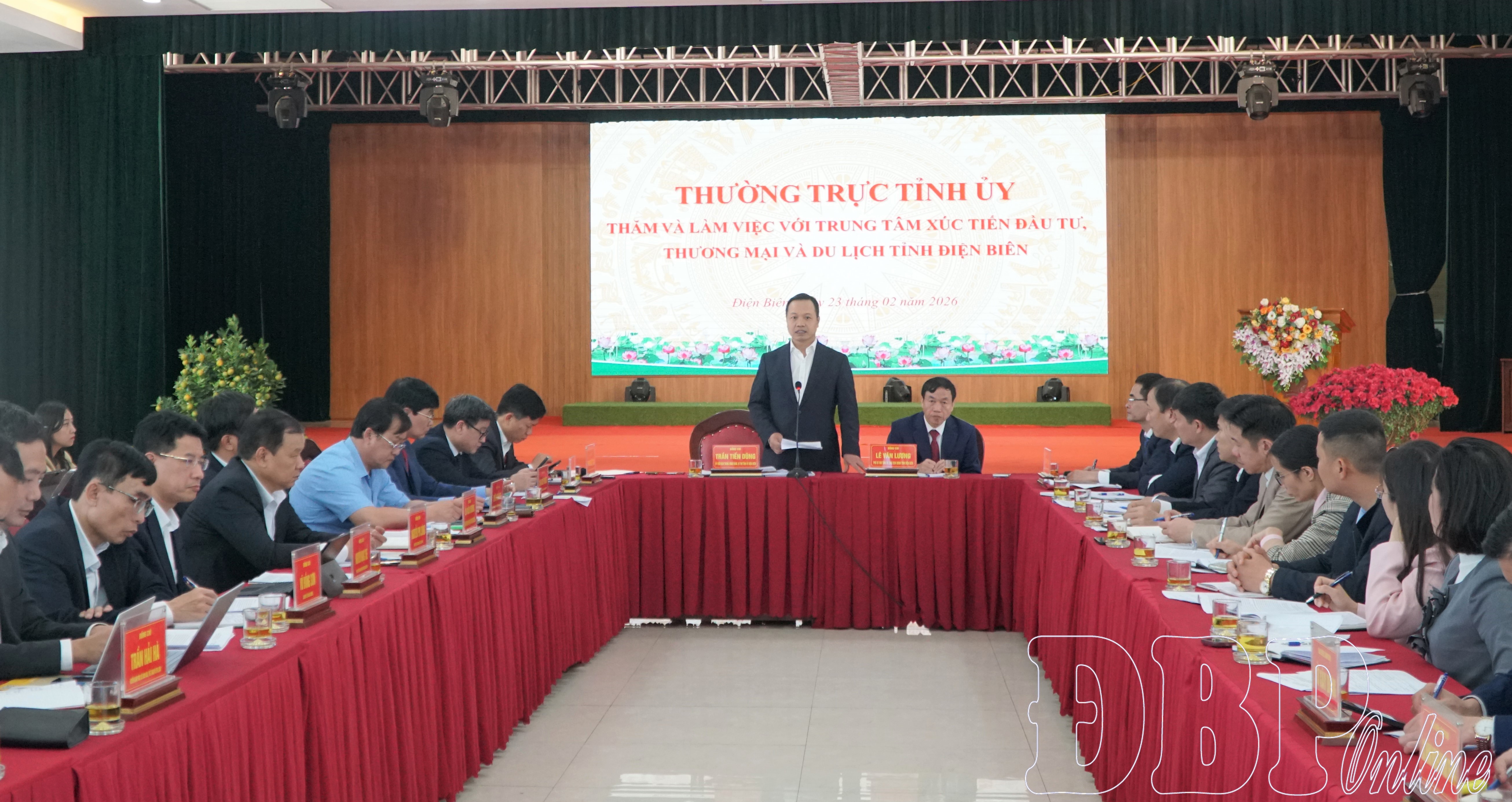 Sáng ngày 23/2, Bí thư Tỉnh ủy Trần Tiến Dũng, Chủ tịch UBND tỉnh Lê Văn Lương chủ trì buổi làm việc với Trung tâm Xúc tiến Đầu tư, Thương mại và Du lịch tỉnh về tình hình thực hiện nhiệm vụ từ khi thành lập và phương hướng trọng tâm thời gian tới. Tham dự buổi làm việc có Ban Thường vụ Tỉnh ủy; lãnh đạo một số sở, ngành tỉnh.