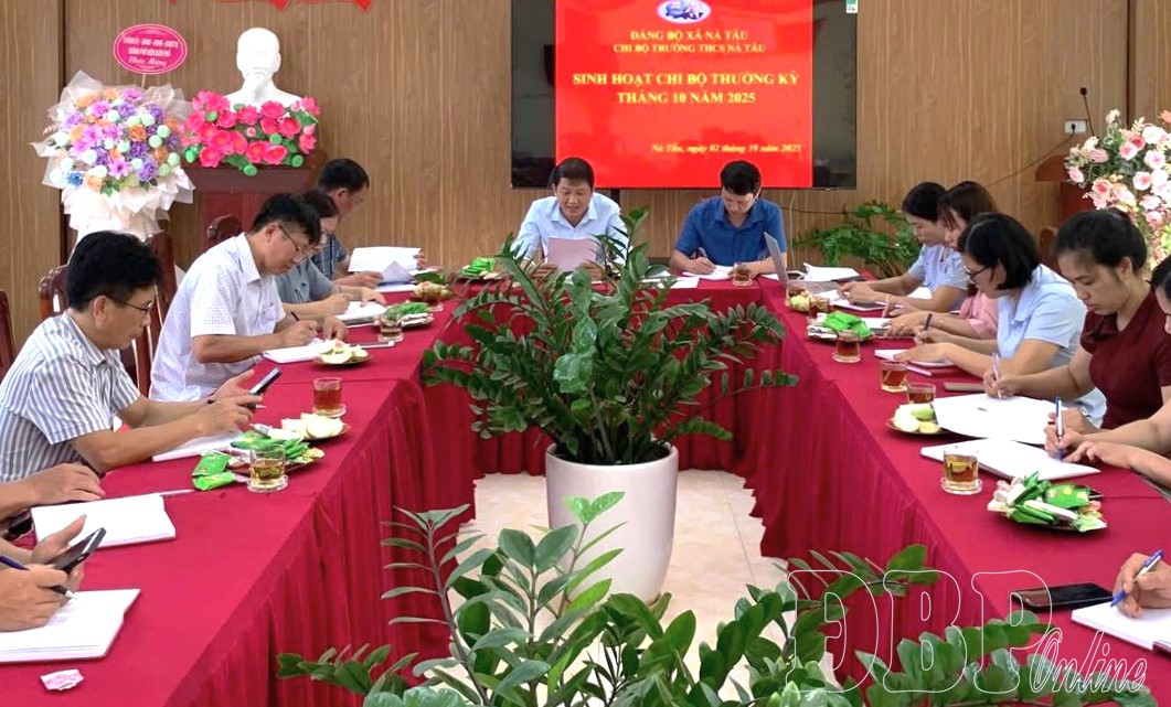 Thực hiện Hướng dẫn số 06-HD/ĐU ngày 18/9/2025 của Đảng ủy xã Nà Tấu về việc nâng cao chất lượng sinh hoạt cấp ủy, chi bộ, Chi bộ Trường THCS Nà Tấu đã tổ chức sinh hoạt chi bộ thường kỳ tháng 10/2025 nghiêm túc, đúng quy định. Dưới sự lãnh đạo trực tiếp của cấp ủy Đảng, buổi sinh hoạt diễn ra theo nguyên tắc tập trung dân chủ, phát huy tinh thần trách nhiệm và tính tiên phong gương mẫu của mỗi đảng viên. Cấp ủy chi bộ đã chủ động xây dựng chương trình sinh hoạt với các nội dung cụ thể như: Thông báo tình hình đảng viên, thu nộp đảng phí, phổ biến văn bản chỉ đạo của cấp trên, đánh giá kết quả tháng 9 và triển khai nhiệm vụ tháng 10.