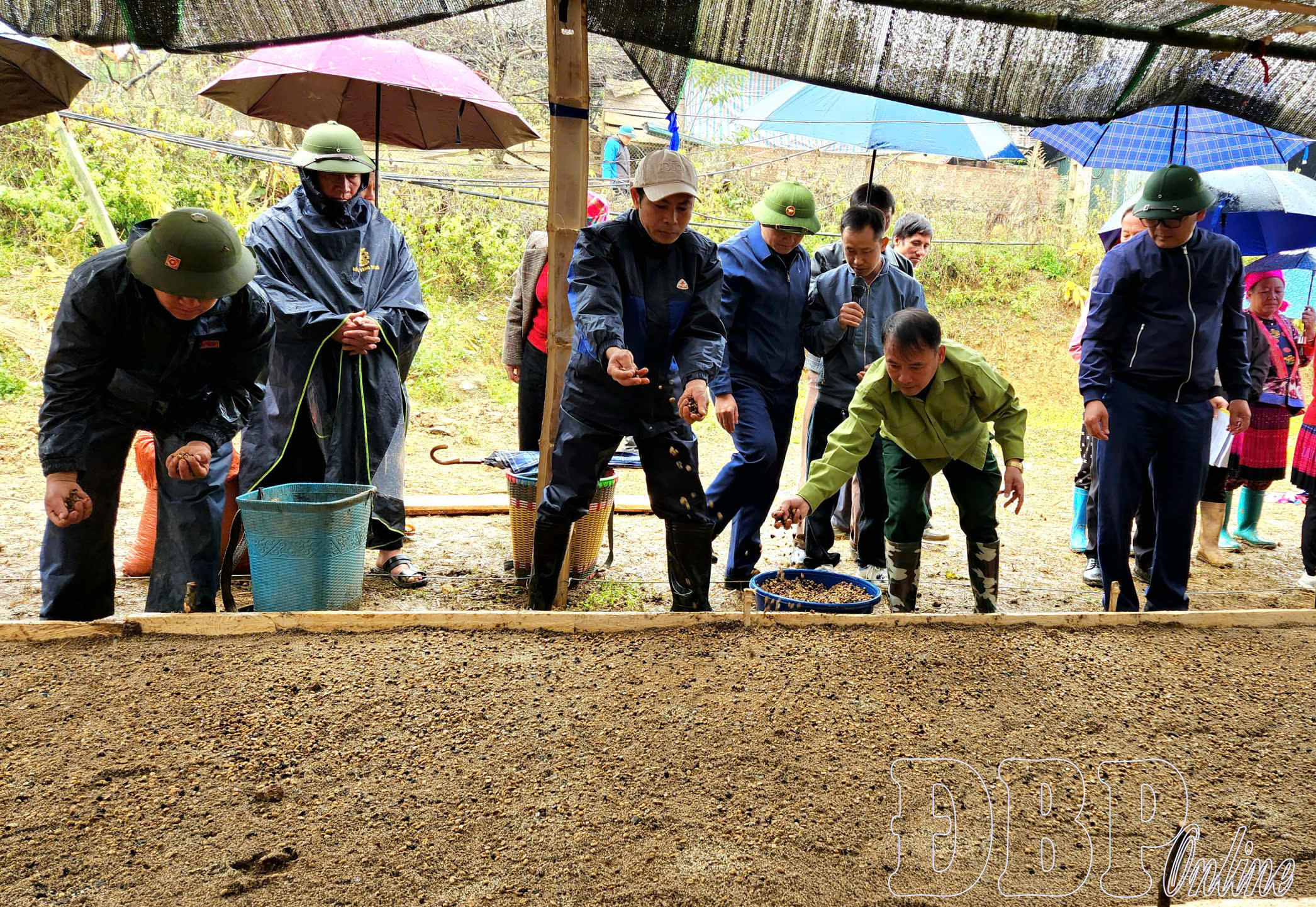Lãnh đạo xã Tủa Thàng tham gia cuộc phát động ươm cây cà phê giống trên địa bàn xã.