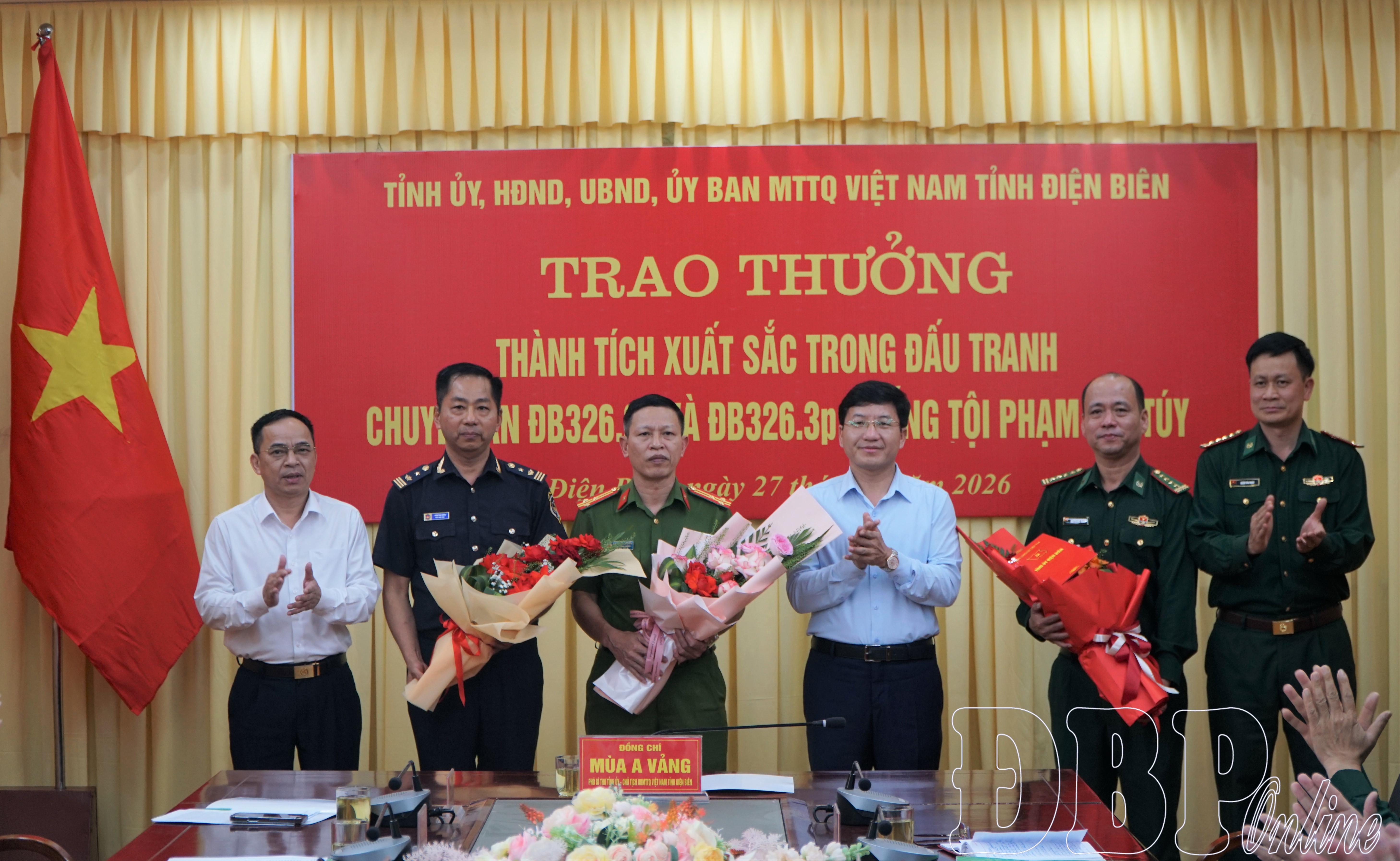 Chiều ngày 27/3, Tỉnh ủy, HĐND, UBND, Ủy ban MTTQ Việt Nam tỉnh tổ chức trao thưởng thành tích xuất sắc trong đấu tranh chuyên án ĐB326.2p và ĐB326.3p về chống tội phạm ma túy.