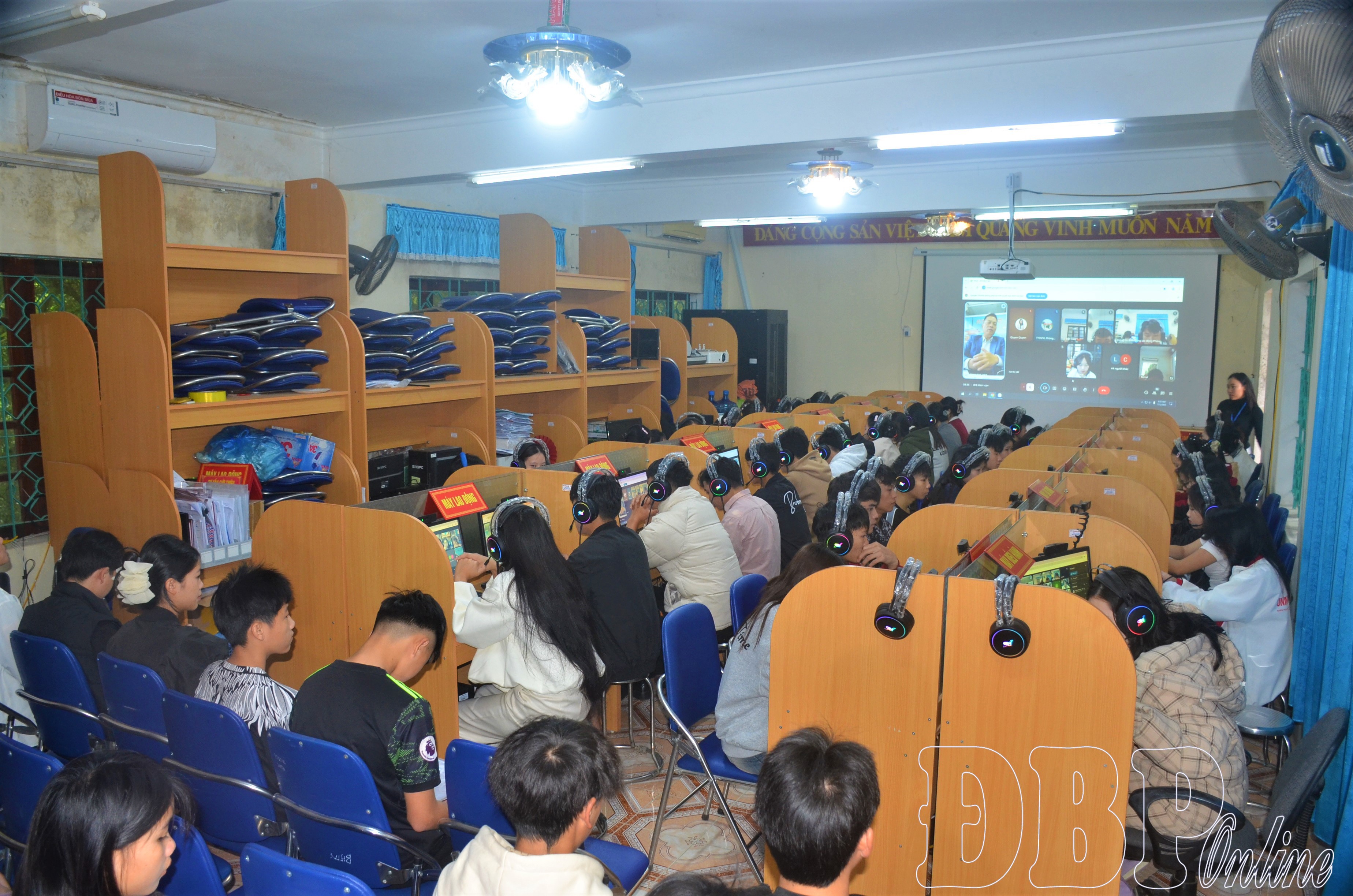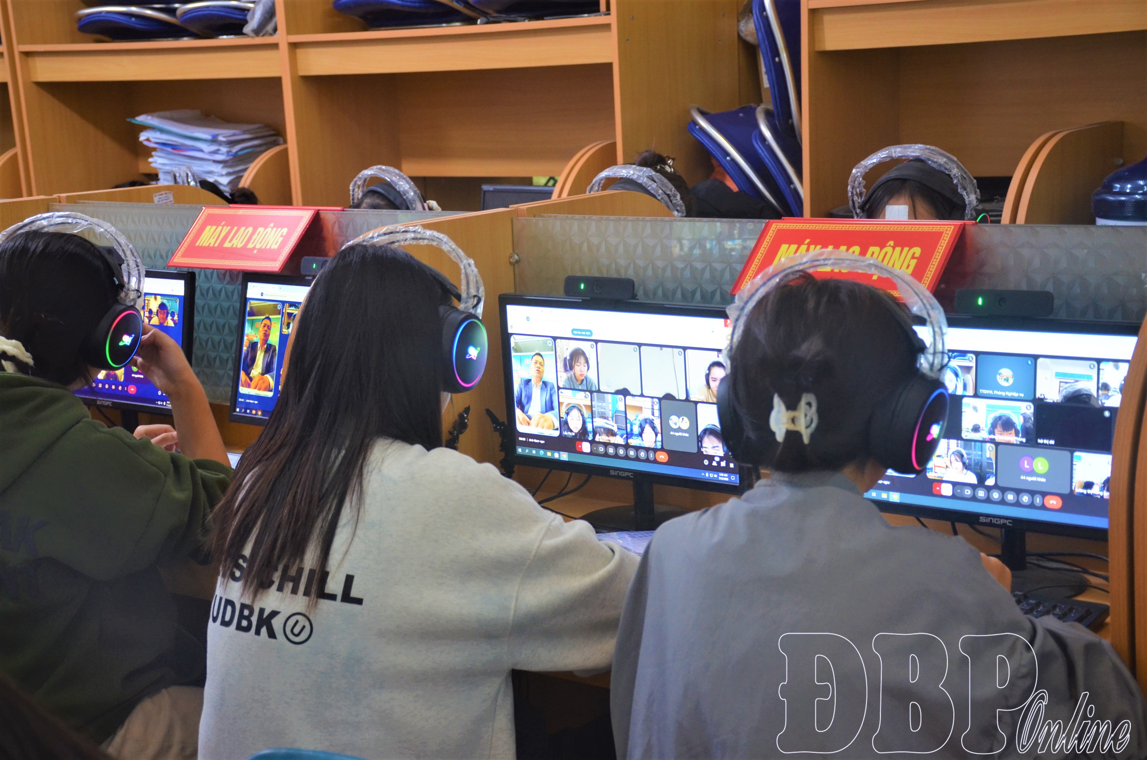 Học sinh, sinh viên Trường Cao đẳng Điện Biên tham gia phiên giao dịch việc làm trực tuyến.