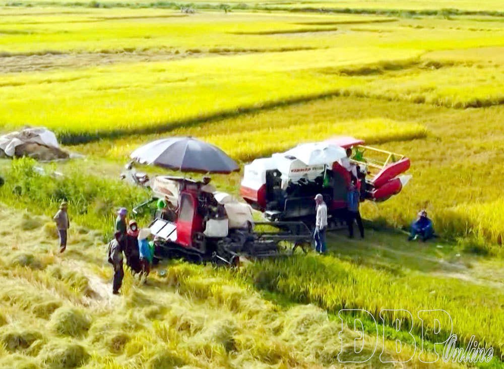Điện Biên đang đẩy mạnh cơ giới hóa sản xuất, hình thành vùng sản xuất lúa hàng hóa chất lượng cao gắn với chế biến sâu và xây dựng thương hiệu gạo Điện Biên. Ảnh: Dương Hải