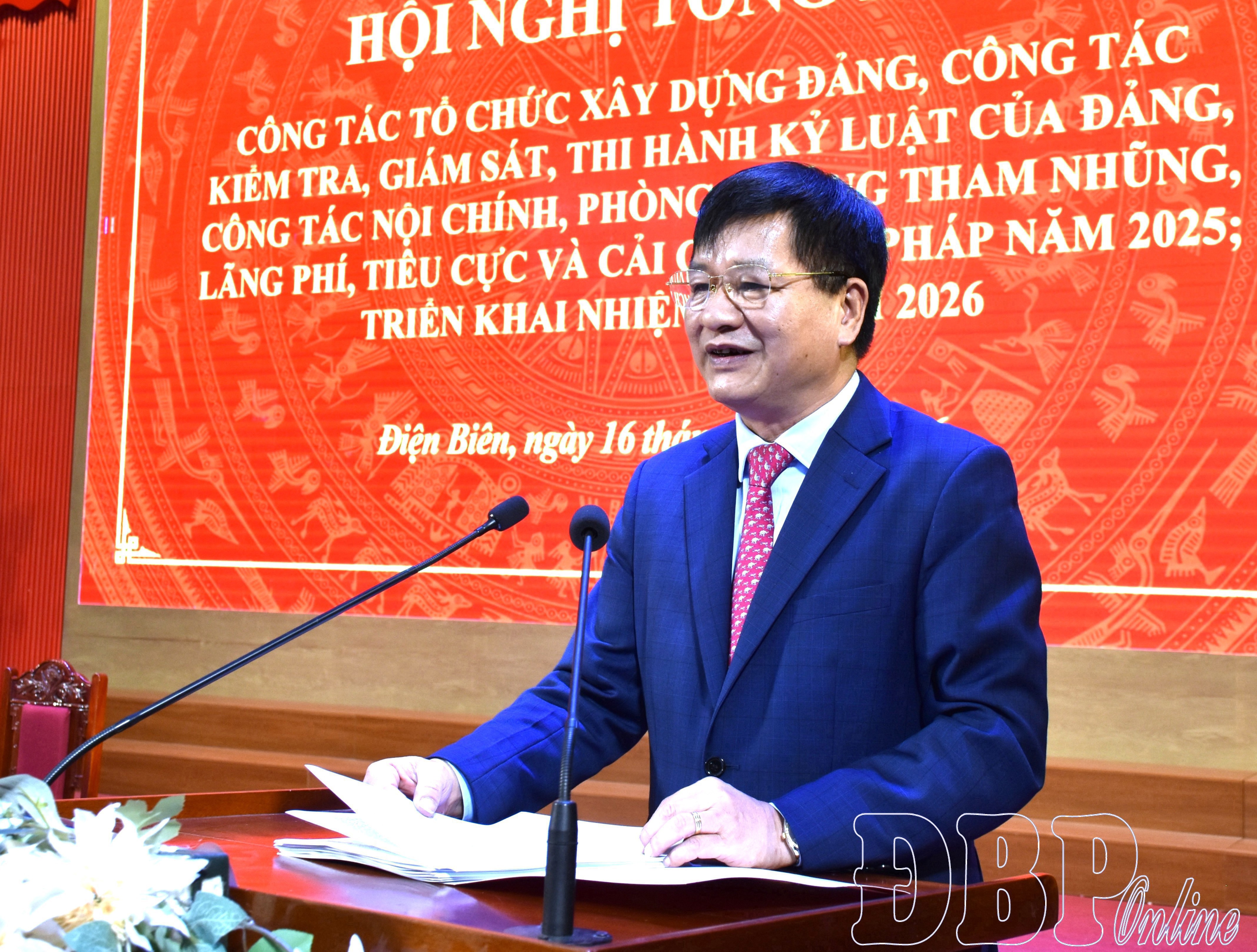Cấp ủy, tổ chức đảng, ủy ban kiểm tra các cấp chủ động xây dựng, thực hiện và hoàn thành chương trình, kế hoạch công tác kiểm tra, giám sát; chương trình công tác nội chính, phòng, chống tham nhũng, lãng phí, tiêu cực, cải cách tư pháp. Chủ động kiểm tra, giám sát, nắm chắc tình hình triển khai hoạt động sắp xếp, tổ chức lại đơn vị hành chính các cấp và thực hiện mô hình tổ chức chính quyền địa phương hai cấp; việc lãnh đạo, chỉ đạo tổ chức đại hội đảng bộ các cấp tiến tới Đại hội đại biểu toàn quốc lần thứ XIV của Đảng; thực hiện các chuyên đề, nhiệm vụ trọng tâm theo kết luận của Bộ Chính trị, Ban Bí thư; việc triển khai các dự án đầu tư công trọng điểm; đồng thời hoàn thành nhiệm vụ Ban Thường vụ Tỉnh ủy, Ban Chỉ đạo phòng, chống tham nhũng, tiêu cực tỉnh giao...