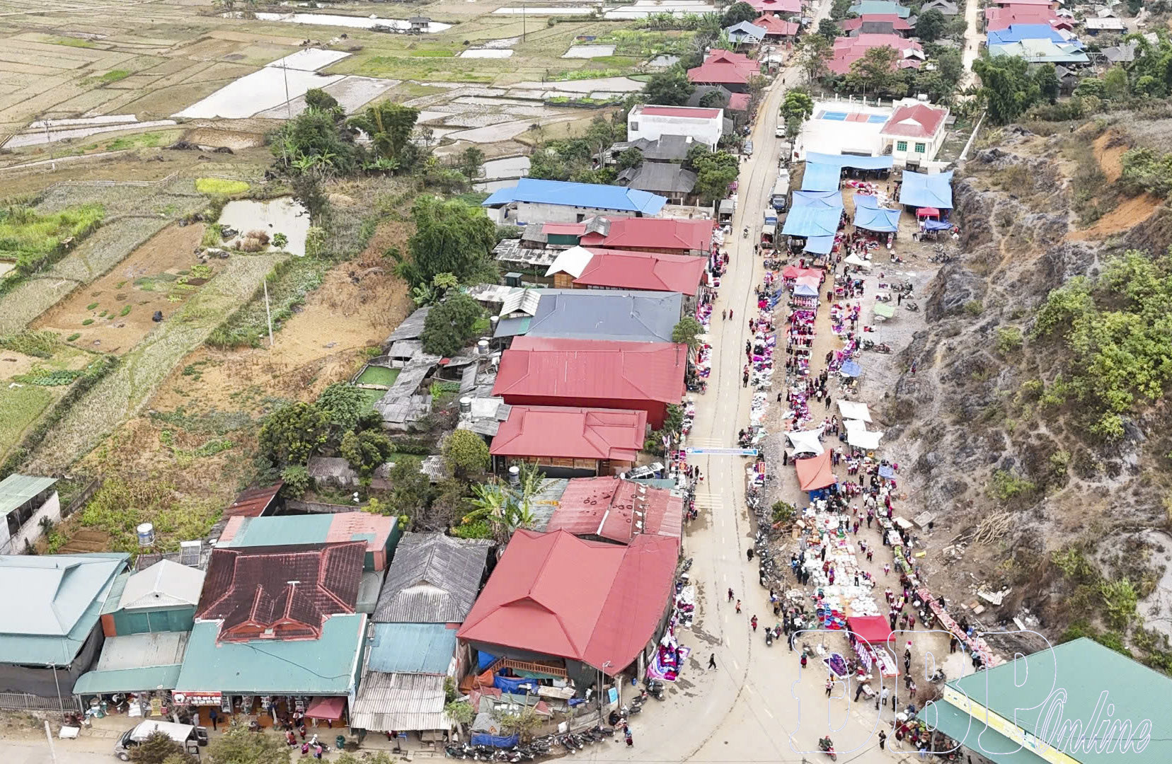 Toàn cảnh chợ phiên.Chợ phiên được mở vào ngày Dần và ngày Thân âm lịch.