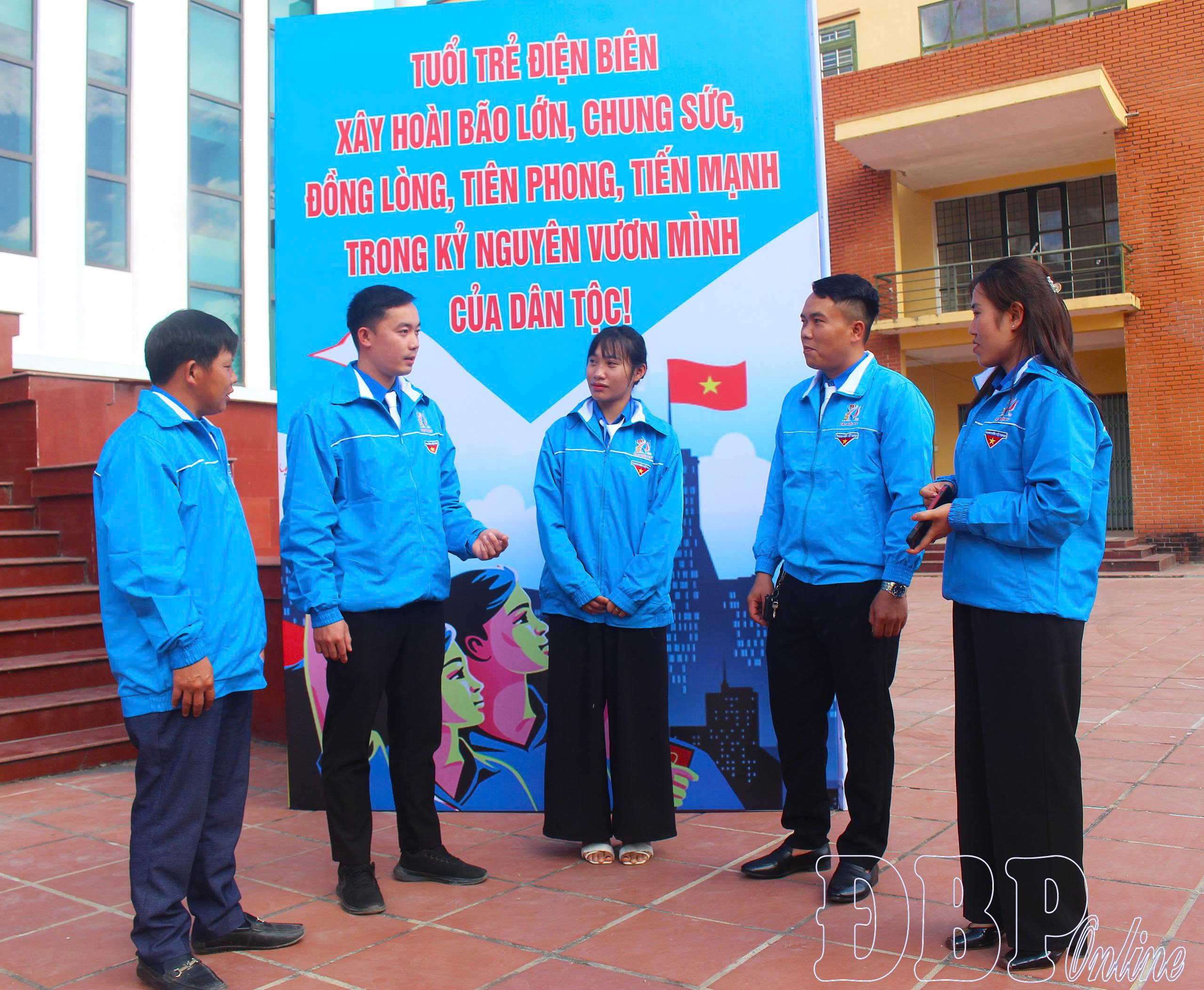 Anh Lò Văn Kiên (đầu tiên bên trái) và đoàn viên thanh niên xã Nà Hỳ, tham gia hoạt động Đoàn tại địa phương.