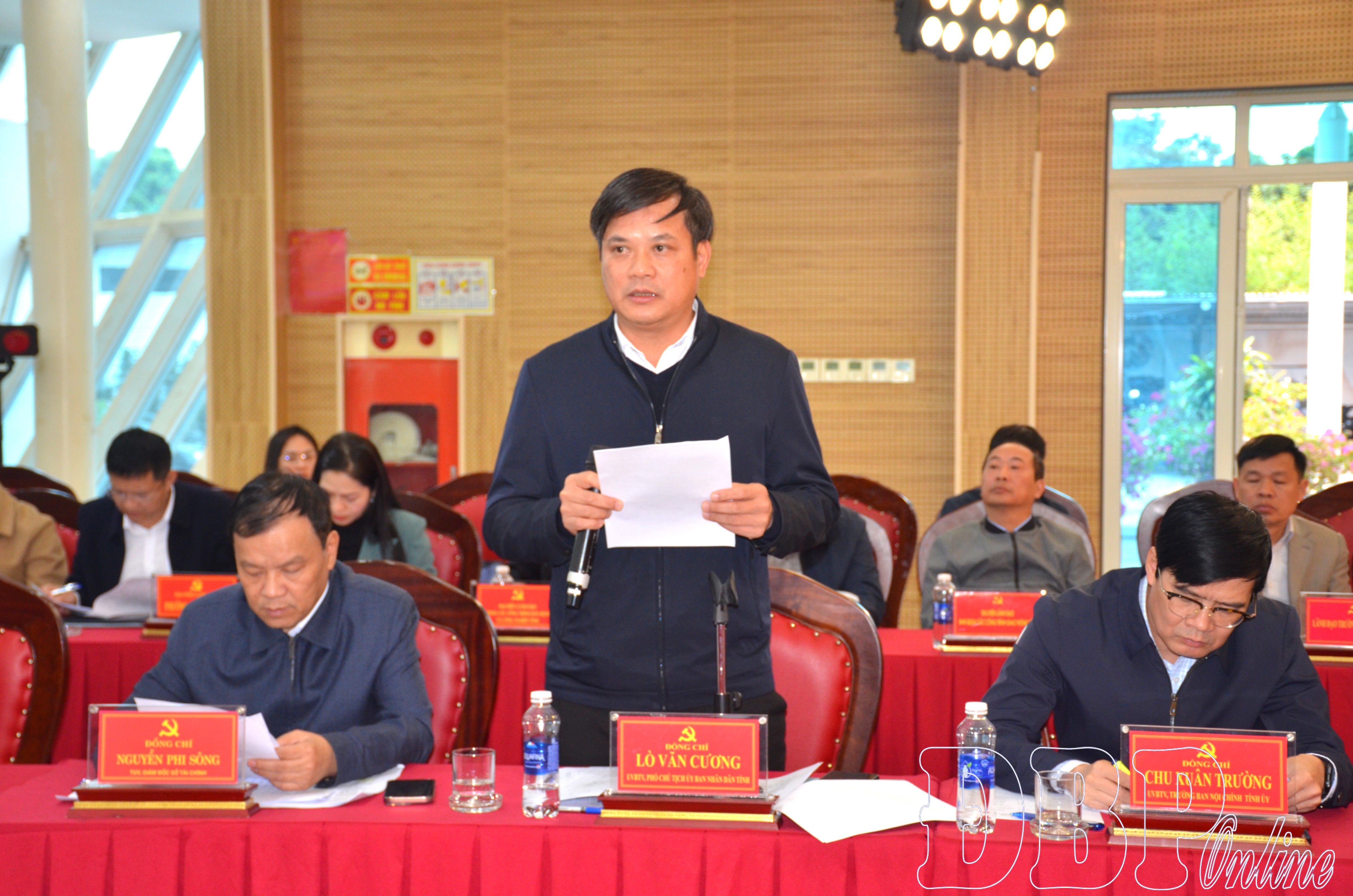 Chủ trì hội nghị có các đồng chí: Trần Tiến Dũng, Bí thư Tỉnh ủy; Lê Thành Đô, Phó Bí thư Thường trực Tỉnh ủy, Chủ tịch HĐND tỉnh; Lê Văn Lương, Phó Bí thư Tỉnh ủy, Chủ tịch UBND tỉnh; Mùa A Vảng, Ủy viên dự khuyết Trung ương Đảng, Phó Bí thư Tỉnh ủy, Chủ tịch Ủy ban MTTQ Việt Nam tỉnh. Tham dự hội nghị có các đồng chí trong Ban Thường vụ Tỉnh ủy, lãnh đạo các sở, ban, ngành tỉnh; lãnh đạo Đảng ủy, UBND một số xã, phường và các cơ quan, đơn vị liên quan.