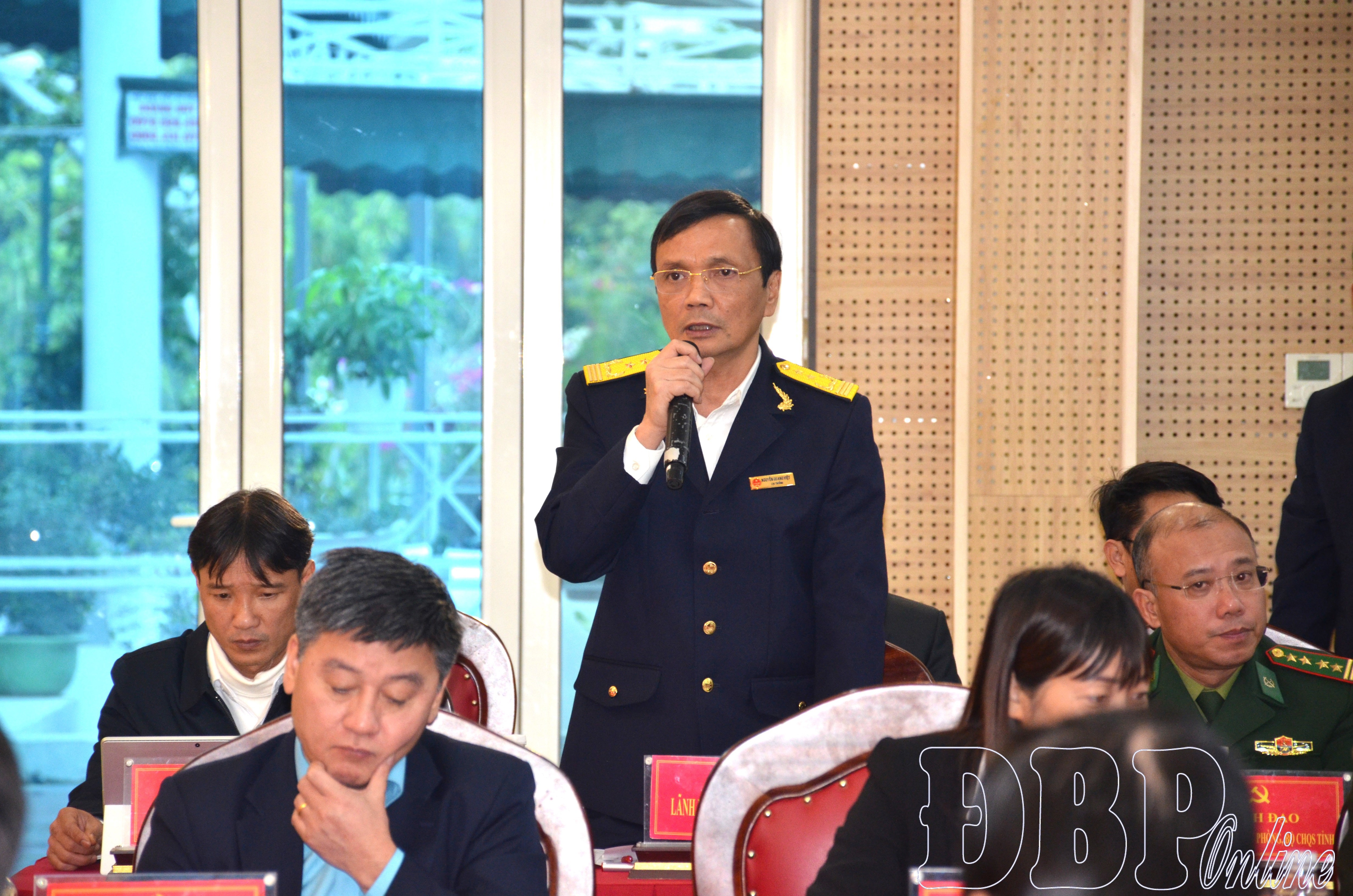 Lãnh đạo Ban Chỉ huy BĐBP (Bộ CHQS tỉnh) phát biểu tại hội nghị.