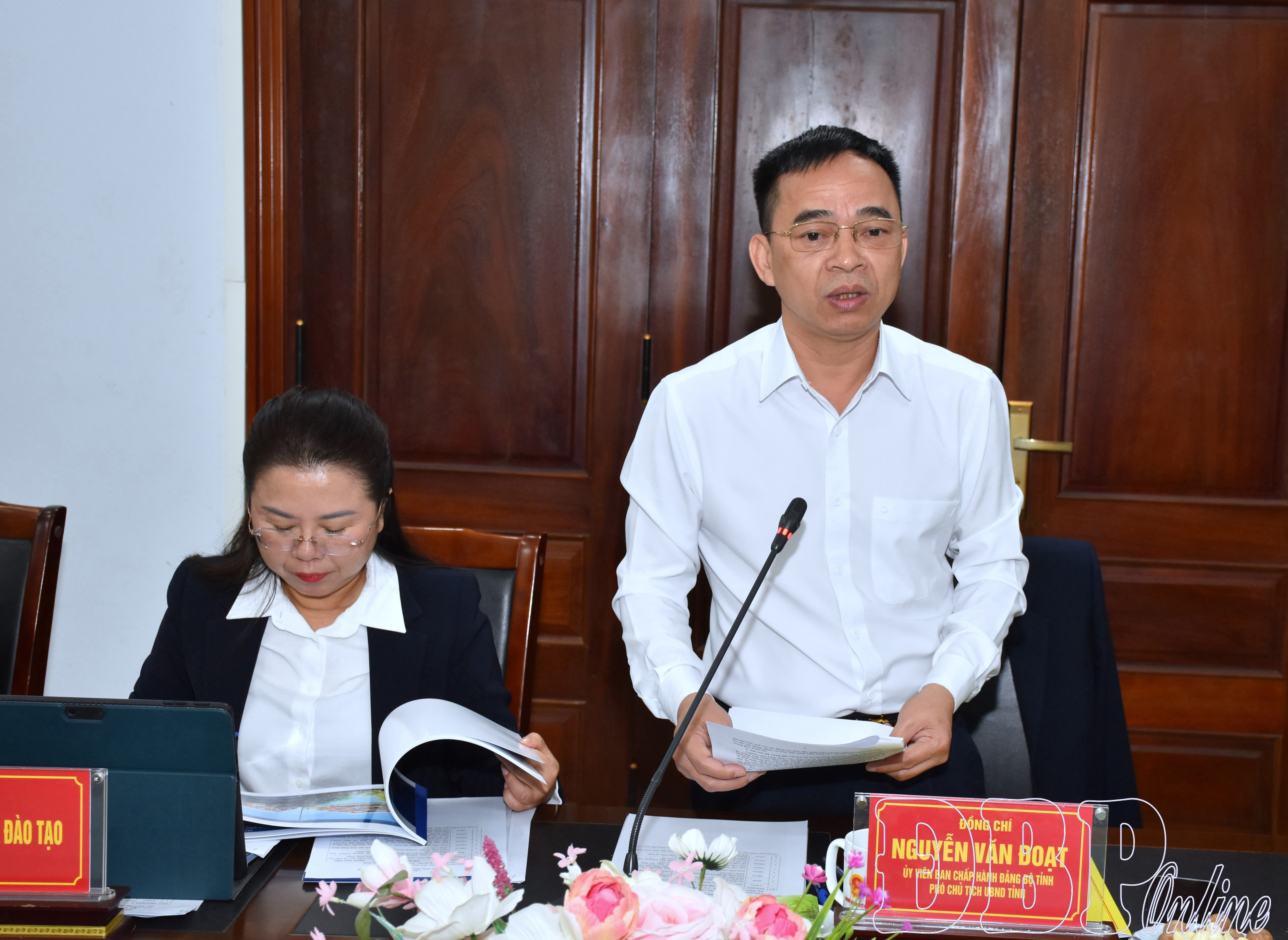Phó Chủ tịch UBND tỉnh Nguyễn Văn Đoạt trao đổi, làm rõ các vấn đề liên quan tại buổi làm việc với Tập đoàn FPT.