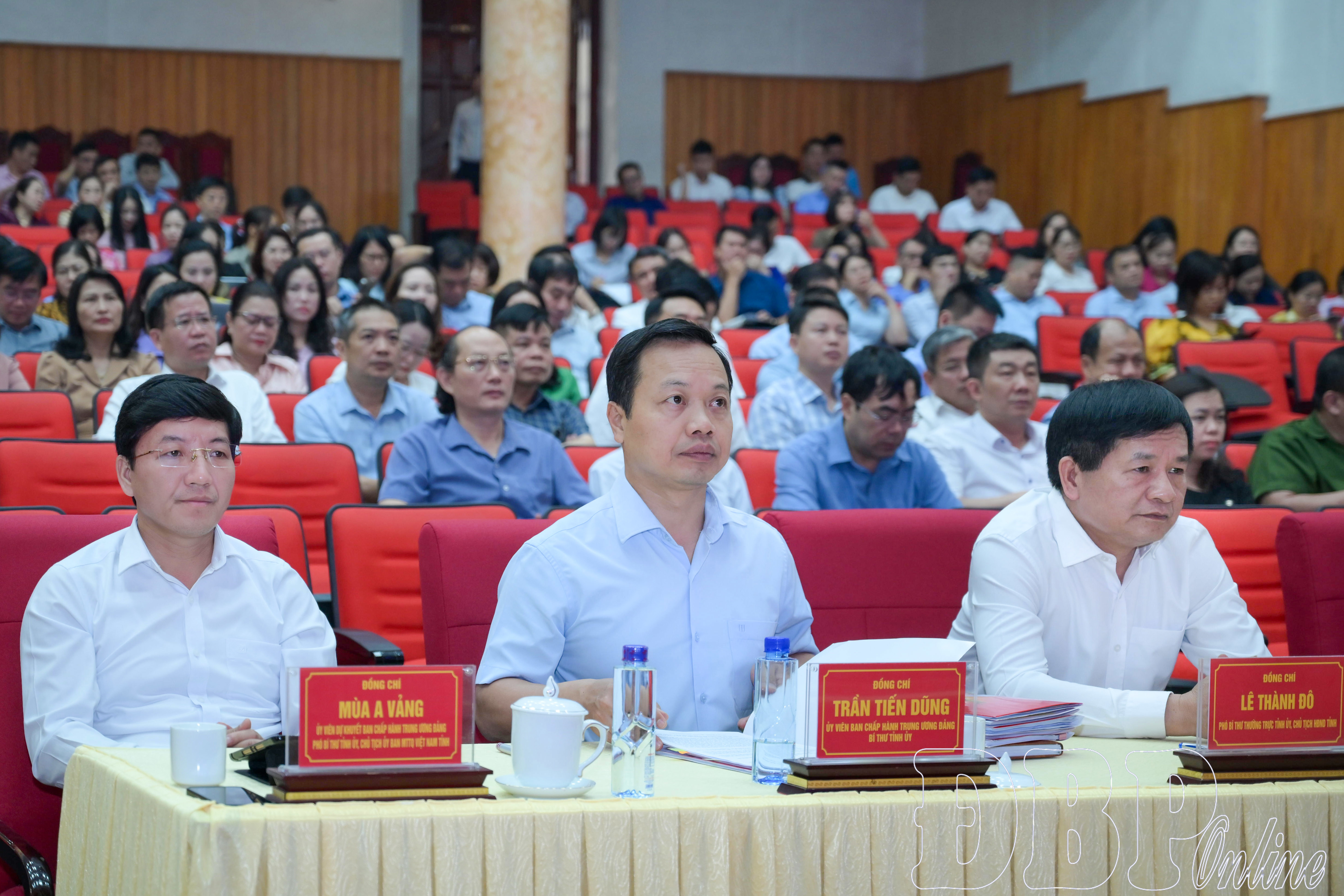 Dự hội nghị tại điểm cầu tỉnh Điện Biên có các đồng chí: Trần Tiến Dũng, Ủy viên Trung ương Đảng, Bí thư Tỉnh ủy, Trưởng Đoàn ĐBQH tỉnh; Lê Thành Đô, Phó Bí thư Thường trực Tỉnh ủy, Chủ tịch HĐND tỉnh; Mùa A Vảng, Ủy viên dự khuyết Trung ương Đảng, Phó Bí thư Tỉnh ủy, Chủ tịch Ủy ban MTTQ Việt Nam tỉnh; các đồng chí Thường trực Tỉnh ủy, HĐND tỉnh; Ban Thường vụ Tỉnh ủy, Ban Chấp hành Đảng bộ tỉnh cùng đại diện lãnh đạo các ban, sở, ngành tỉnh.