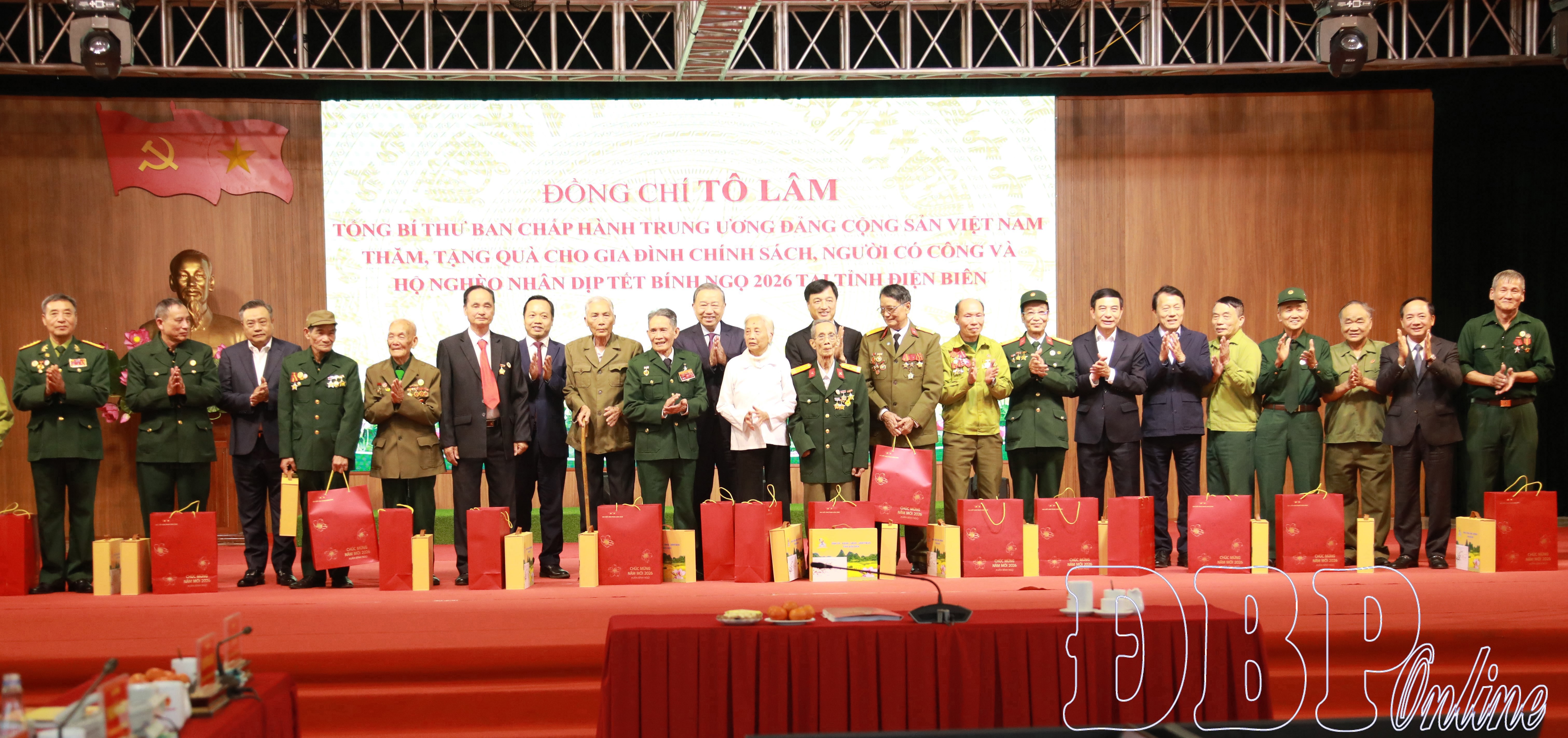 Ngày 31/1, đoàn công tác lãnh đạo Đảng, Nhà nước do đồng chí Tô Lâm, Tổng Bí thư Ban Chấp hành Trung ương Đảng Cộng sản Việt Nam làm trưởng đoàn đã làm việc với Ban Chấp hành Đảng bộ tỉnh, chúc tết nhân dân các dân tộc tỉnh Điện Biên, tặng quà người có công, gia đình chính sách, hộ nghèo; dự khánh thành Nhà tưởng niệm Chủ tịch Hồ Chí Minh; dâng hương các anh hùng, liệt sĩ và khánh thành Trường Phổ thông nội trú liên cấp Tiểu học - THCS Si Pa Phìn. Sau đây là một số hình ảnh về hoạt động của Tổng Bí thư Tô Lâm tại Điện Biên.