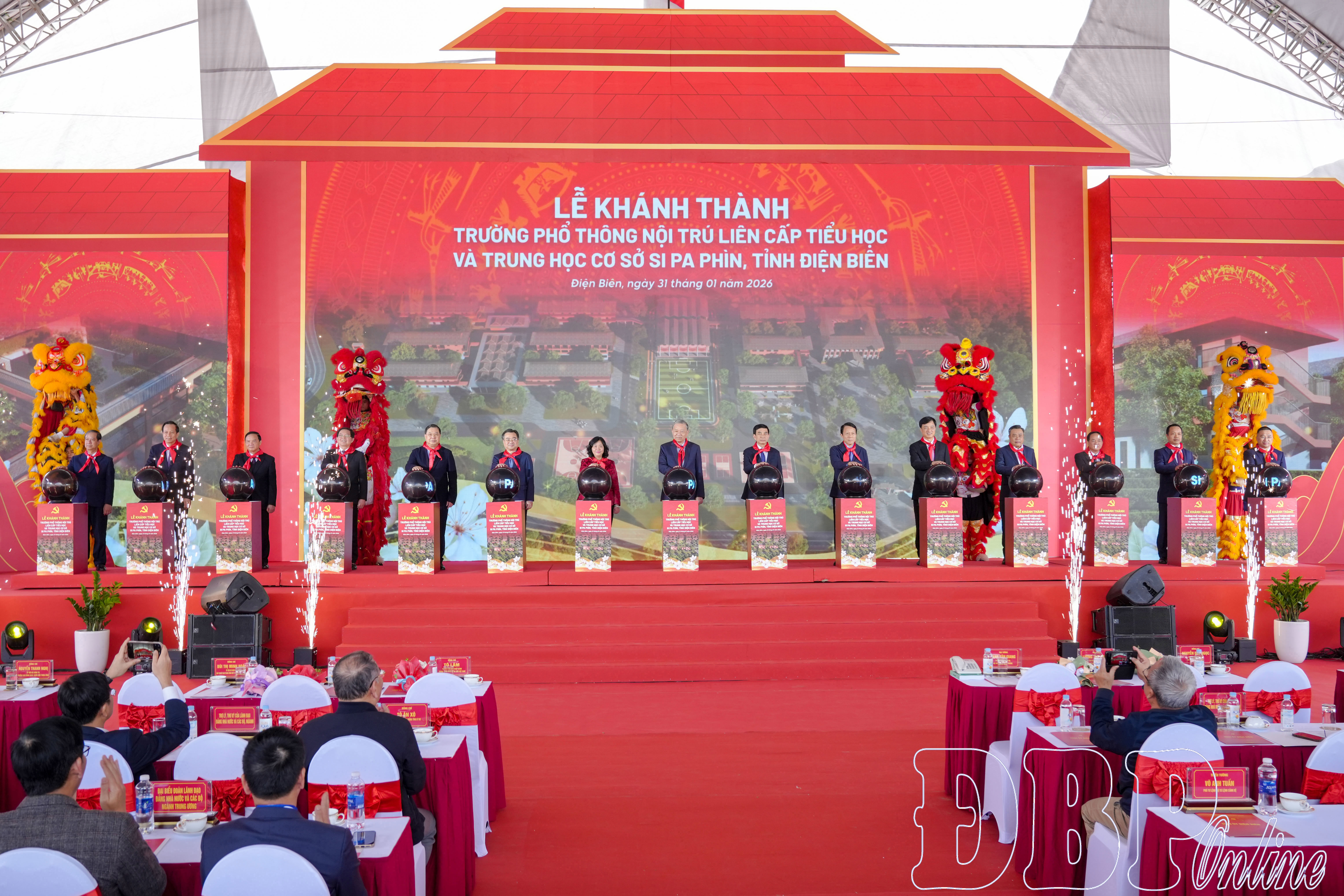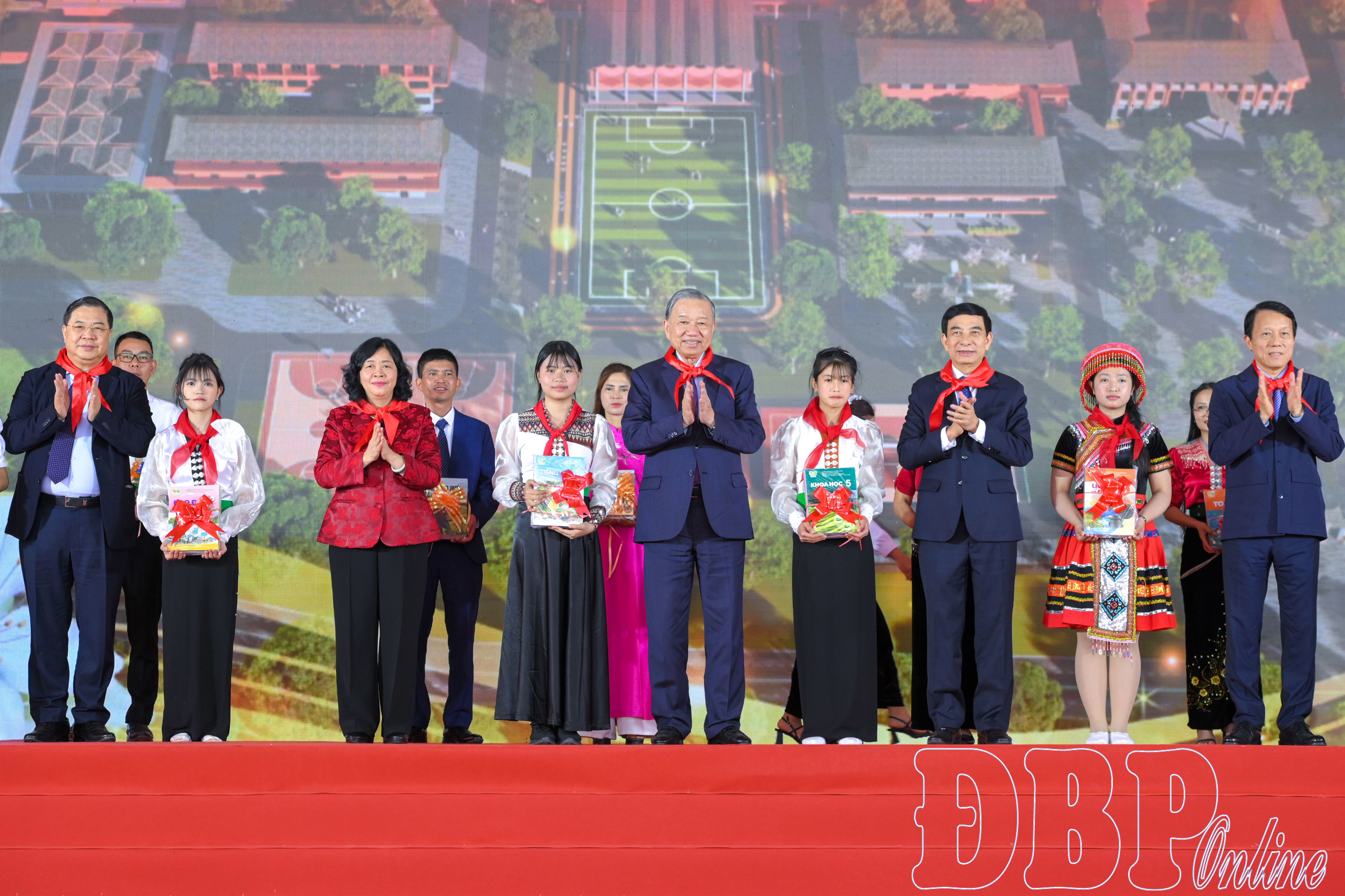 Tổng Bí thư Tô Lâm, các đại biểu cùng đông đảo cán bộ, người dân, học sinh dự Lễ khánh thành Nhà tưởng niệm Chủ tịch Hồ Chí Minh tại di tích Đồi E2.Tổng Bí thư Tô Lâm cùng các đồng chí lãnh đạo Đảng, Nhà nước và Bí thư Tỉnh ủy Trần Tiến Dũng tặng quà gia đình chính sách, người có công.Tổng Bí thư Tô Lâm trao đổi với đại biểu, cán bộ Sở Văn hóa, Thể thao và Du lịch trong khuôn viên Đền thờ Liệt sĩ tại Chiến trường Điện Biên Phủ.Tổng Bí thư Tô Lâm và đại biểu thực hiện nghi thức khánh thành Trường Phổ thông nội trú liên cấp Tiểu học - THCS Si Pa Phìn.Học sinh, thiếu nhi tặng hoa, đeo khăn quàng đỏ cho Tổng Bí thư Tô Lâm.Tổng Bí thư Tô Lâm và các đồng chí lãnh đạo trao tặng sách cho Trường Phổ thông nội trú liên cấp Tiểu học - THCS Si Pa Phìn.